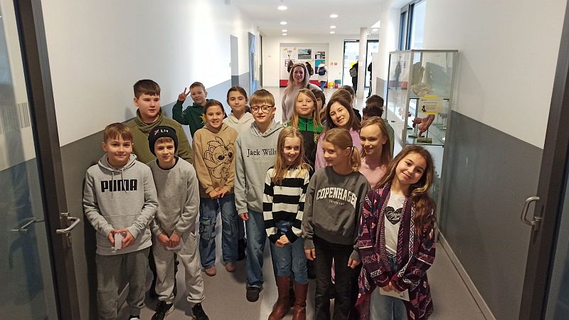 An einem verregneten Donnerstag (12.02.26) besuchten wir gemeinsam einen Vormittag lang mit unseren Viertklässlern (4a+b) die IGS Sassenburg, die auf den ersten Eindruck mit ihrer Größe und Modernität beeindruckte. Nach einer kurzen Begrüßung in der Mensa wurden wir klassenweise von zwei Fünftklässlern durch die vielen Räume, Gänge, besonderen Lernorte und NW-Räume der Schule geführt. Besonders schön eingerichtet wirkte der Gebäudeteil für die AGs, den die Klasse gleich für ihre spannenden Fragen an die IGS-Schüler nutzte.