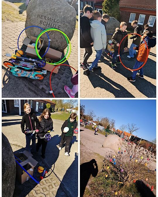 Auf dem Schulhof wurde fleißig gesucht und bereits mit den neuen Spielsachen gespielt.