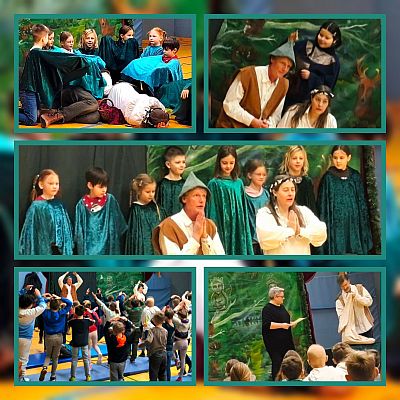 „Knusper, knusper, knäuschen, wer knuspert an meinem Häuschen?“ hieß es am 28.11.25 bei uns in der Turnhalle.Die Junge Oper war zu Besuch und zeigte zu Beginn, was eine Oper ist und was man dafür braucht. Im Anschluss wurde die Kinderoper „Hänsel und Gretel“ von Engelbert Humperdinck gespielt. Unsere Schülerinnen und Schüler wurde hierbei bei zwei Liedern zum großen Chor und sangen mit. Tatkräftig unterstützt wurden die Sängerin und die beiden Sänger von acht zuvor ausgesuchten Kindern, die Hänsel und Gretel als Waldengel beschützten.