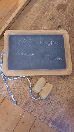 Wir hatten Unterricht mit Fräulein Lehrerin und wir mussten Holzschuhe tragen und auf unbequemen Holzbänken sitzen.“ (Mia 3b)